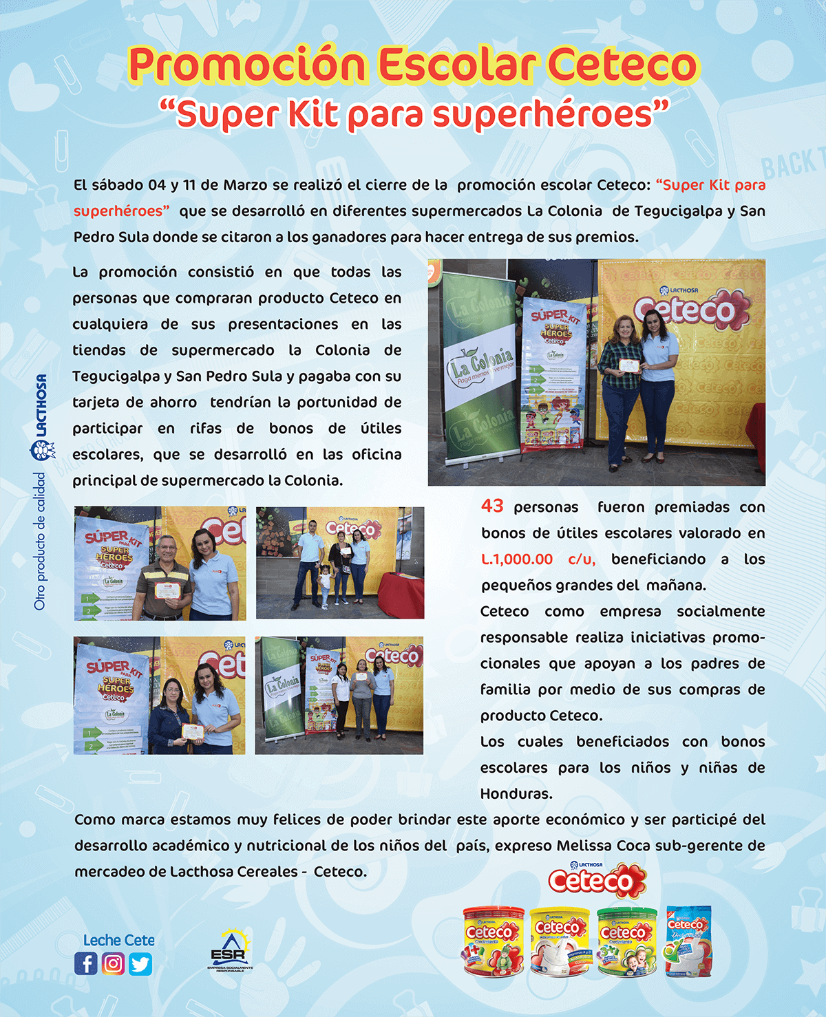 Artículos relacionados ENTREGA DE III RECONOCIMIENTO A CETECO ESR Celebración día del niño – ¡Todos podemos volver a ser niños! CETECO DONARÁ LECHE A 12 FUNDACIONES QUE TRABAJAN INCANSABLEMENTE PARA APOYAR A LOS MÁS NECESITADOS